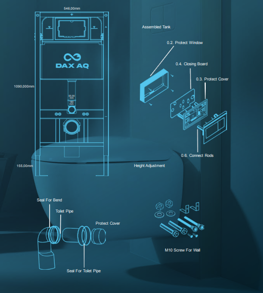 The frame is a durable powder-coated steel structure that provides strong support for the WC installation, ensuring stability, corrosion resistance, and long-lasting performance.